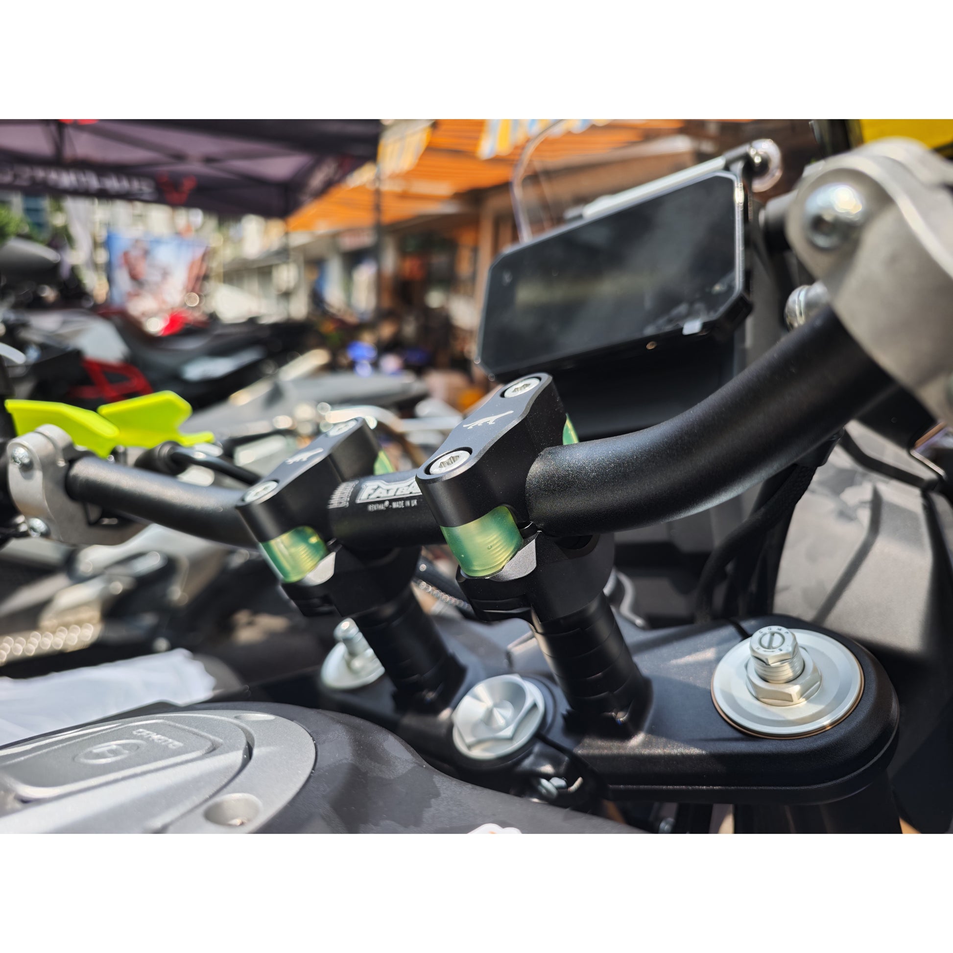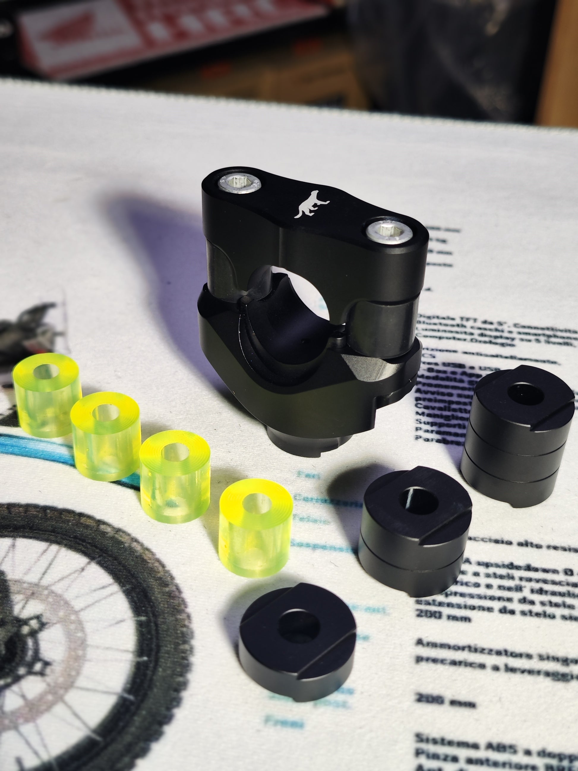 CNC milled handlebar mount with damping rubber inserts